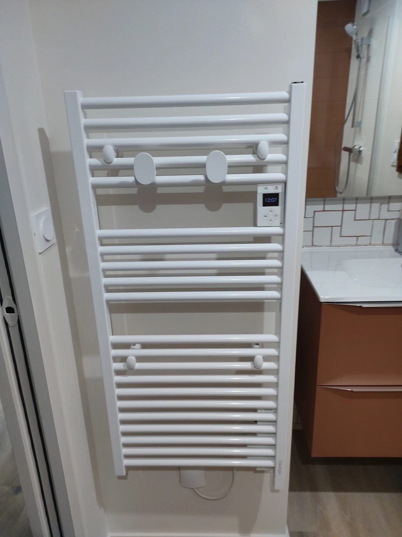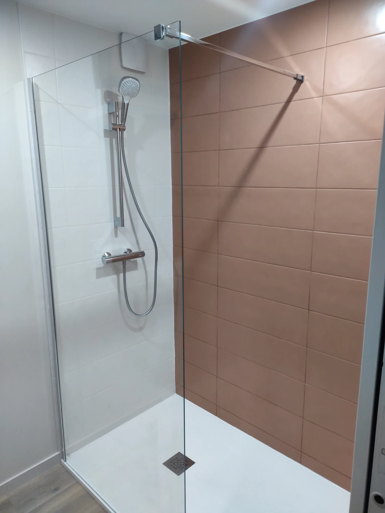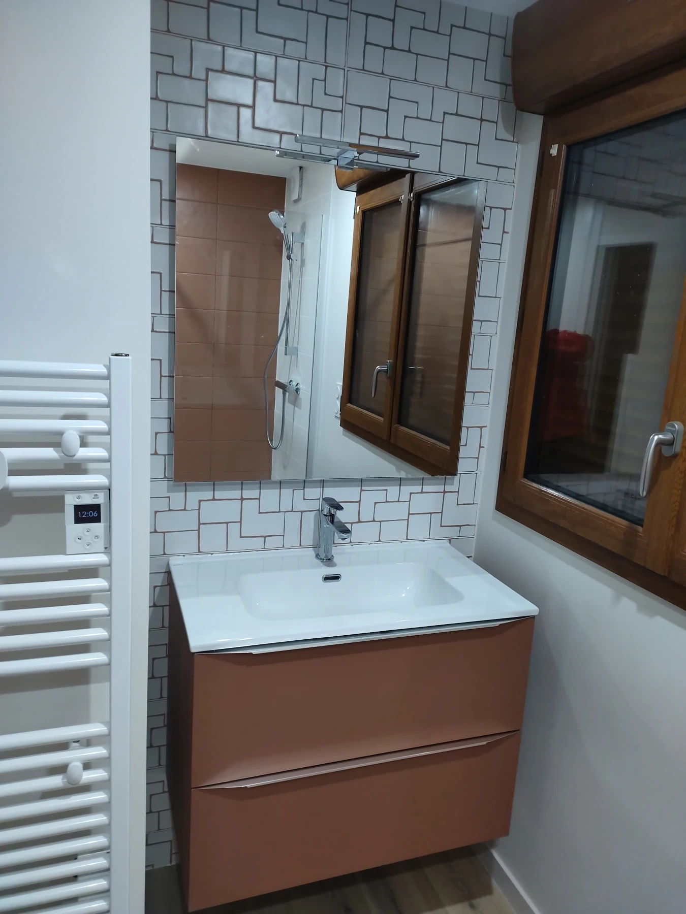 Création au RDC ,d'une maison de 1970 à PLoubaznalec, d'une salle de bain avec receveur 90x160, paroi de 120, pose du meuble et de la faïence choisi par le client chez Cedeo Lannion.
