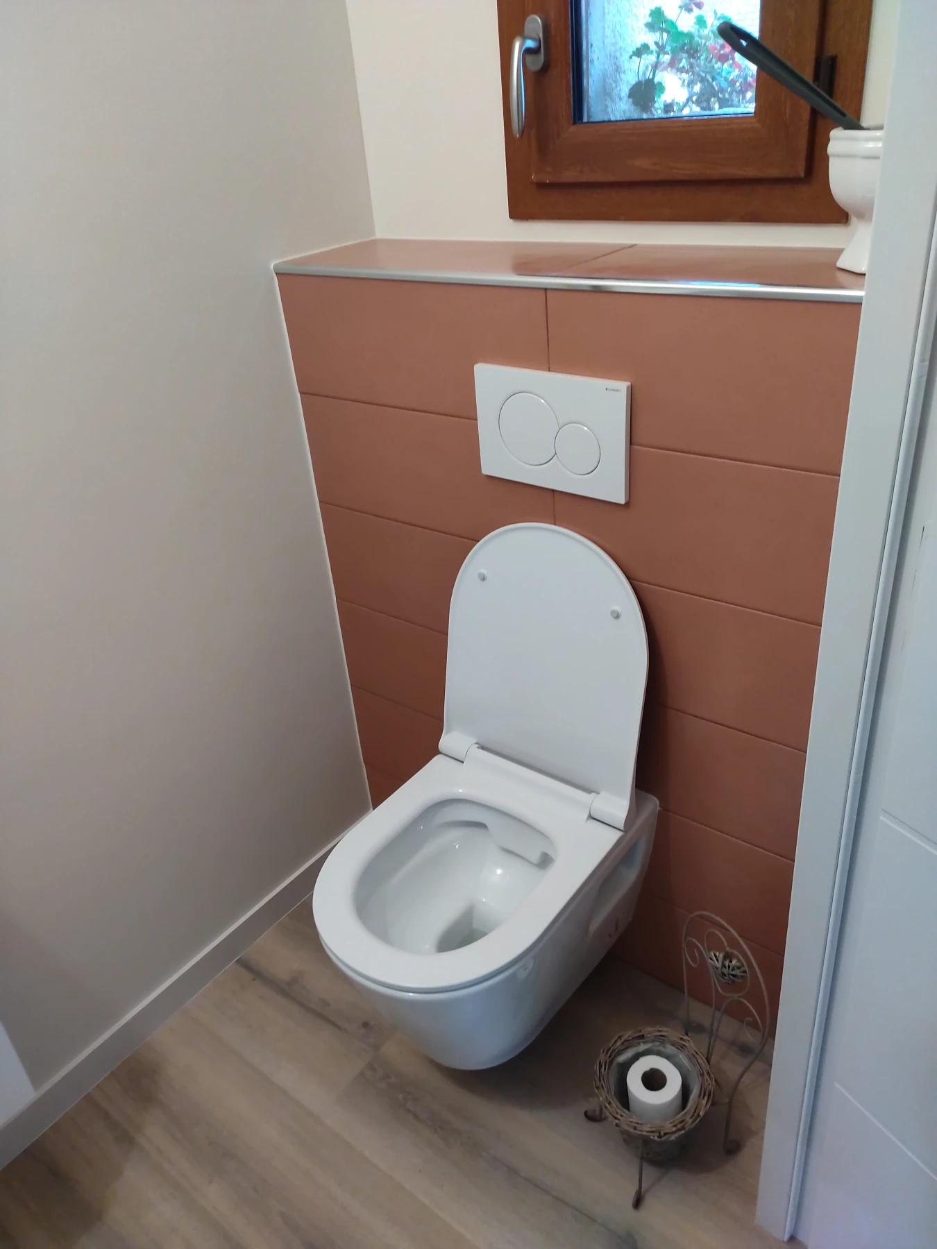 Remplacement du WC par un bati-suppport Geberit avec réalisation de la faïence et pose d'un lave-main.